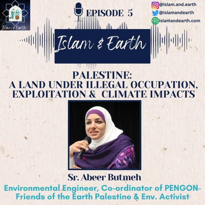 In this episode of Islam & Earth in the last Jumah of Shawwal, 1444, Sr. Abeer Butmeh speaks from over 15 years of experience in environmental work in Palestine. Sr. Abeer explains how the illegal occupation of Palestine is not only impacting innocent citizens, but the land and the biodiversity of Palestine.