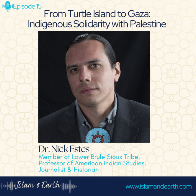 In this episode of Islam & Earth in the second Jumah of Jumada al-Awwal, 1445, Dr. Nick Estes, a member of the lower Brule Sioux Tribe, Professor of American Indian Studies, as well as co-founder of the Red Nation Movement, and Indigenous Solidarity with Palestine speaks both of his personal experiences as well as the work he leads on Indigenous solidarity with Palestine on the deep and direct connections between realities of the Indigenous Peoples and the ongoing Palestinian gen0c!d*.